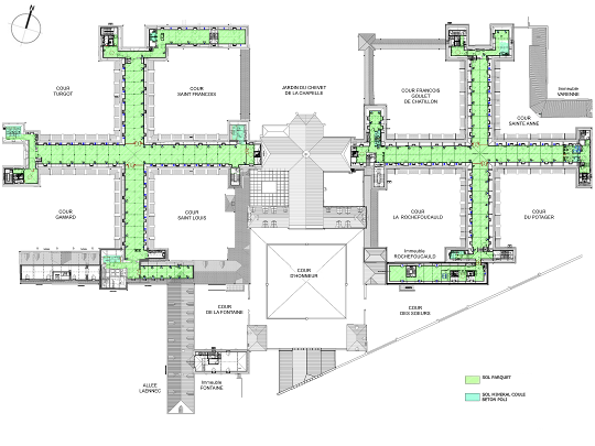 Le projet concerne la transformation des bâtiments historiques de l’ancien Hôpital Laennec dans le 7ème arr. de Paris en immeuble de bureaux. Le site se compose essentiellement de deux grands ensembles de bâtiments en croix sur 3 niveaux articulés de part et d’autre d’une chapelle aujourd’hui désacralisée.