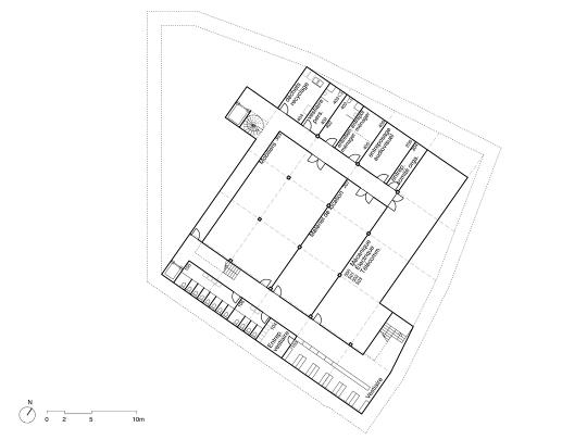 Le projet s’attache à répondre de manière simple et pragmatique aux désirs formulés dans le programme pour la création d’une salle multifonctionnelle, de forte capacité et très flexible. La salle multifonctionnelle, son hall et ses annexes occupent la totalité de la surface du terrain imparti. Le niveau du plancher et la hauteur libre sous poutre sont strictement identiques à ceux de la salle André Bouchard afin de faciliter la mutualisation et la continuité des deux espaces en termes d’usage et de manutention. L’espace en rez-de-jardin est ample, libre, dégagé de toute structure. La majorité des espaces de soutien et de stockage sont positionnés en étage ou au sous-sol afin de libérer l’espace au rez-de-jardin et dégager les vues vers l’extérieur. L’intérieur laisse percevoir les variations climatiques cycliques, saisonnières et journalières des conditions lumineuses et thermiques extérieures. Le soir, le Pavillon de verre est visible et lumineux depuis le jardin.