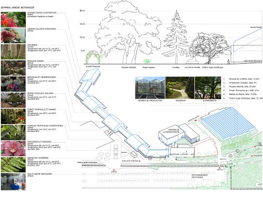 > Maître d’ouvrageVille de Montréal, Insectarium et Jardinbotanique, Espace pour la vie,> ArchitectesFrédéric Druot Architecture,Associés cotraitants Anne Lacaton et Jean Philippe Vassal,avec FABG architectes (Montréal)> PaysagisteCyril Marlin> Botaniste, phyto-sociologueClaude Figureau> Etude structure, mécanique et électricitéSNC - LAVALIN Inc> EconomieYves Chabot> Expert LEED et LBCJoël Courchesne> Surfaces Plancher1 958 m²> Coût des travaux4,59 M€ HT> Programme succinct Salle multifonctionnelle: capacité 300 / 600 personnes assisesAccueil, espace horticulture> CalendrierConcours sur esquisse, 2014, projet Lauréat> SpécificitésLabel LEED et BREEAM |