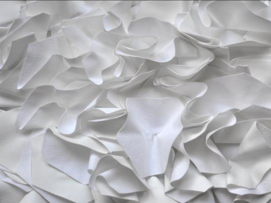 « Le Balcon », Restaurant panoramique de 150 couverts : Le projet de restaurant s’inscrit dans l’espace spectaculaire du Niveau 6 de la Philharmonie réalisée par Jean Nouvel. L’espace surplombe la canopée du parc de la Villette, où se dégage une vue magique sur Paris. Cette vue et la lumière offerte sont la géographie constituante d’un projet attentif au contexte spatial esthétique et technique d’un projet remarquable. Le projet optimise le maximum des volumes capables, le maximum de vues offerte et la maximum de surface possible. Le sol, le bar et les tables créent des surfaces sombres et continues qui réfléchissent légèrement la lumière des façades et soulignent la volumétrie imposante de l’espace. Les assises sont une création originale, réalisées à partir d’un assemblage de tissus sérigraphiés plissés, déclinés selon les tonalités de la grande salle de concert, elles apportent couleur, douceur et joyeuses variations, en écho aux frondaisons du Parc.