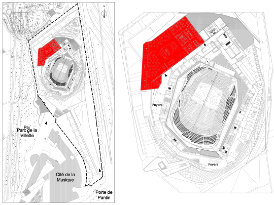 Localisation du restaurant panoramique de la Philharmonie de Paris Niveau 6 |