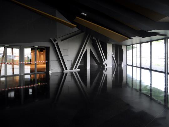 « Le Balcon », Restaurant panoramique de 150 couverts : Le projet de restaurant s’inscrit dans l’espace spectaculaire du Niveau 6 de la Philharmonie réalisée par Jean Nouvel. L’espace surplombe la canopée du parc de la Villette, où se dégage une vue magique sur Paris. Cette vue et la lumière offerte sont la géographie constituante d’un projet attentif au contexte spatial esthétique et technique d’un projet remarquable. Le projet optimise le maximum des volumes capables, le maximum de vues offerte et la maximum de surface possible. Le sol, le bar et les tables créent des surfaces sombres et continues qui réfléchissent légèrement la lumière des façades et soulignent la volumétrie imposante de l’espace. Les assises sont une création originale, réalisées à partir d’un assemblage de tissus sérigraphiés plissés, déclinés selon les tonalités de la grande salle de concert, elles apportent couleur, douceur et joyeuses variations, en écho aux frondaisons du Parc.