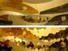 « Le Balcon », Restaurant panoramique de 150 couverts : Le projet de restaurant s’inscrit dans l’espace spectaculaire du Niveau 6 de la Philharmonie réalisée par Jean Nouvel. L’espace surplombe la canopée du parc de la Villette, où se dégage une vue magique sur Paris. Cette vue et la lumière offerte sont la géographie constituante d’un projet attentif au contexte spatial esthétique et technique d’un projet remarquable. Le projet optimise le maximum des volumes capables, le maximum de vues offerte et la maximum de surface possible. Le sol, le bar et les tables créent des surfaces sombres et continues qui réfléchissent légèrement la lumière des façades et soulignent la volumétrie imposante de l’espace. Les assises sont une création originale, réalisées à partir d’un assemblage de tissus sérigraphiés plissés, déclinés selon les tonalités de la grande salle de concert, elles apportent couleur, douceur et joyeuses variations, en écho aux frondaisons du Parc.
