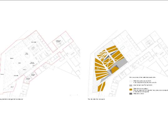 > Maître d’ouvrageCOMPASS Group> ArchitecteFrédéric Druot Architecture> Coordination travaux MOEBATSCOP> EconomieSLETEC> Aménagements intérieursCREATISMRG: Cuisines> Mobilier spécifiqueARTCAN: AssisesCOMEC: Bar et mobilier de service> Surfaces planchersRestaurant / Bar et Cuisines : 1430 m²Bar des musiciens: 120 m²Café: 260 m²> Coût des travaux3,4 M€ HT> CalendrierLivré en Juillet 2015 |