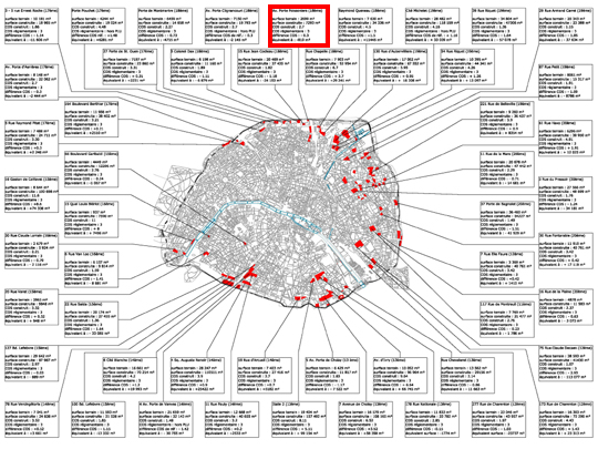 Recensement systématique des informations pour chaque situation repérée (cadre rouge : secteur Poissonnier, cas d’étude) |