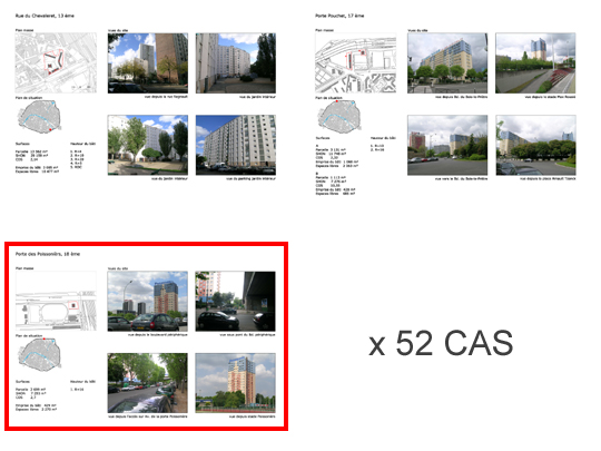 Pour chaque situation, une fiche bilan est établie (cadre rouge : secteur Poissonnier, cas d’étude) |