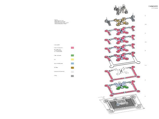 Trois géométries patrimoniales différentes et complémentaires, précisément relevées et redessinées, épurées au plus juste de leurs gabarits et du développement des surfaces, de leurs étages, de leurs organisations, de leurs reliefs allégées, de leur masse et de leurs épaisseurs minérales, de leurs formidables toitures, ...