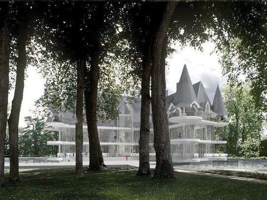 > Maître d’ouvrageprivé> Site65 hectares de paysage71 000 m² de surfaces utiles195 à 255 chambres, suites, suites présidentielles. 20 salons et bibliothèques, salons de réceptions, salons de musique, 18 salles à manger, restaurants, cafés 5 galeries d’expositions 22 salles de séminaires 1 amphithéâtre Salles de culture physique, détente, remise en forme, bains, piscines intérieures et extérieures, spa, balnéo, boutiques et services club house, night bar |