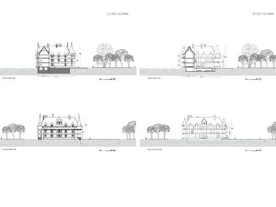 Trois géométries patrimoniales différentes et complémentaires, précisément relevées et redessinées, épurées au plus juste de leurs gabarits et du développement des surfaces, de leurs étages, de leurs organisations, de leurs reliefs allégées, de leur masse et de leurs épaisseurs minérales, de leurs formidables toitures, ...